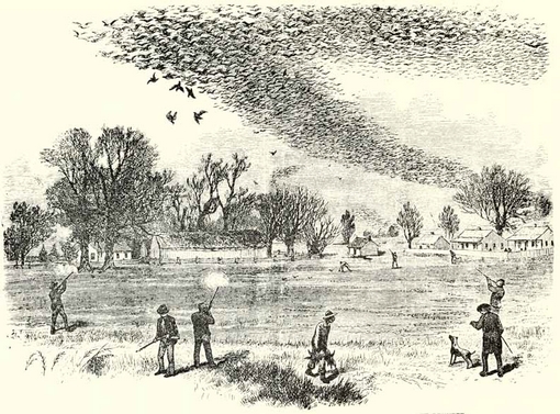 Vol de pigeons migrateurs (Ectopistes migratorius) (Bernd Herrmann et William I. Woods (2010). Neither Biblical Plague Nor Pristine Myth : A Lesson from Central European Sparrows, Geographical Review, 100 (2) : 176-186)