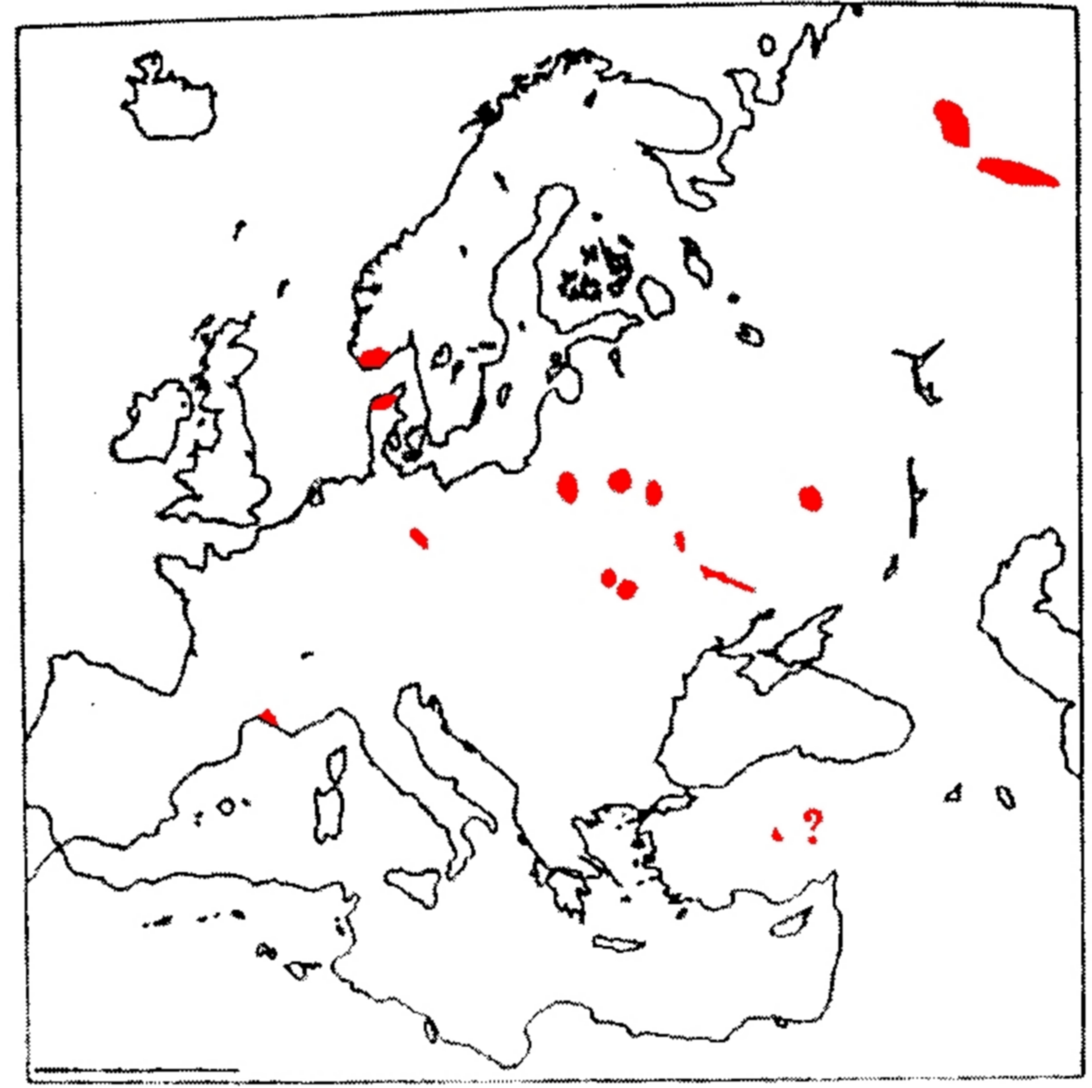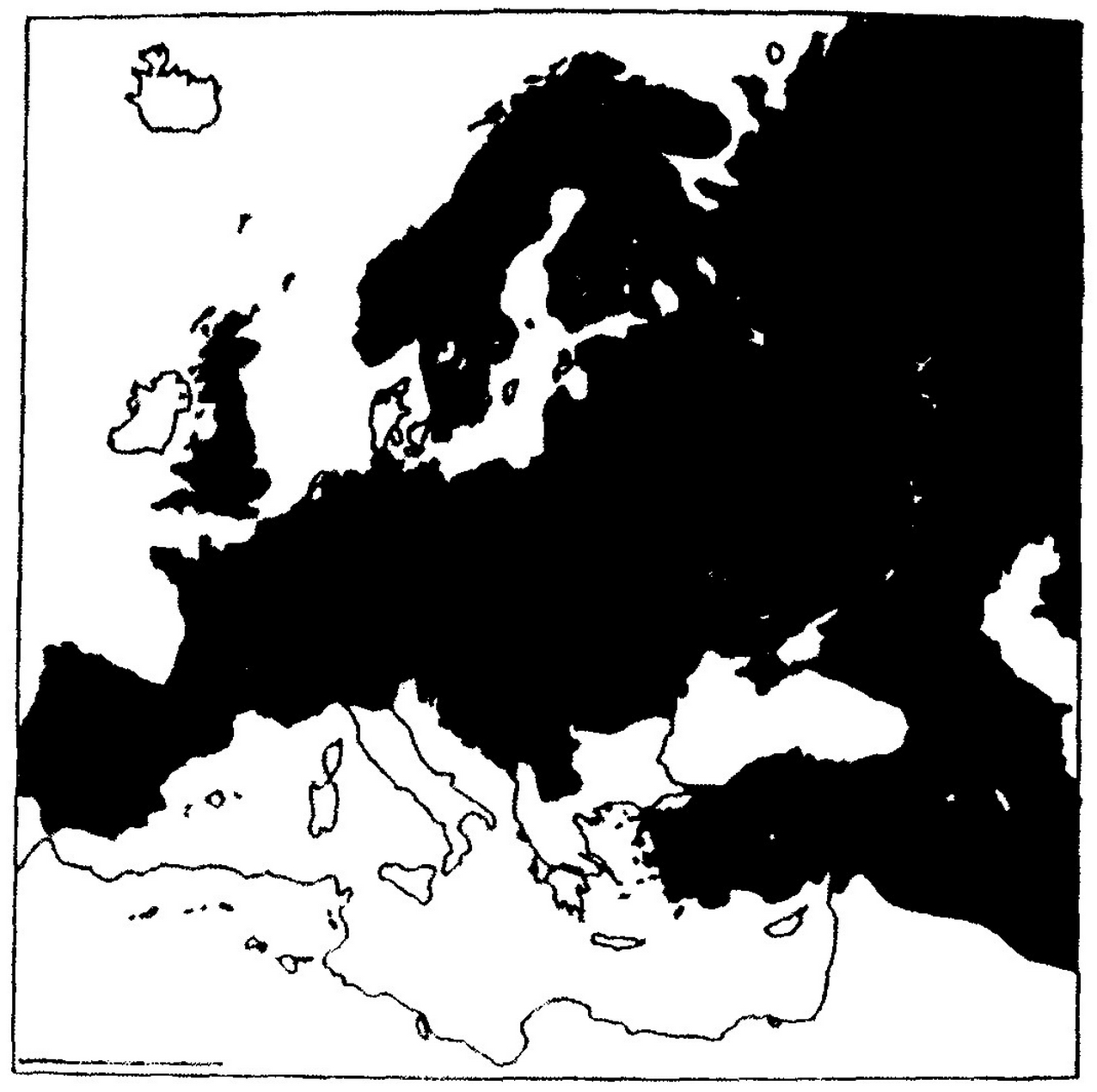Répartition du castor en Europe vers 1900 (d’après Véron, 1992)