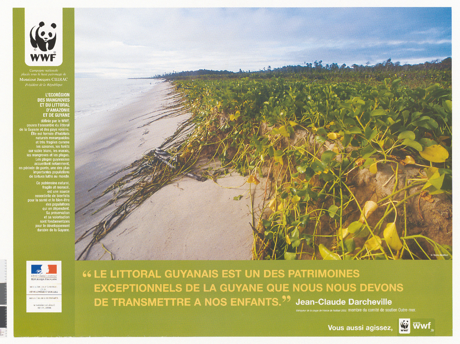 « Le littoral guyanais est un des patrimoines exceptionnels de la Guyane que nous nous devons de transmettre à nos enfants », Jean-Claude Darcheville, vainqueur de la coupe de France 2002, membre du comité de soutien Outre-mer.