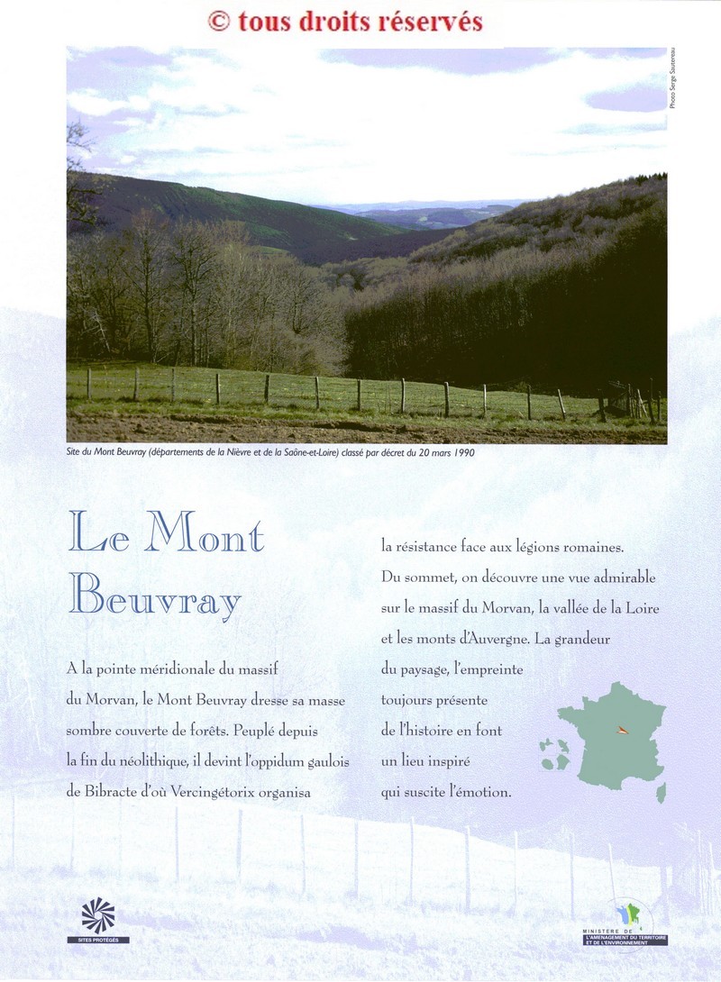 20060546/10 « Le Mont/Beuvray/[...] », Parimage (Ed.), [1999], photo de Serge Sautereau, [vue du Mont Beuvray dans la Nièvre et la Saône-et-Loire, plus logo], 1 ex., 40 x 30 cm, couleur. |