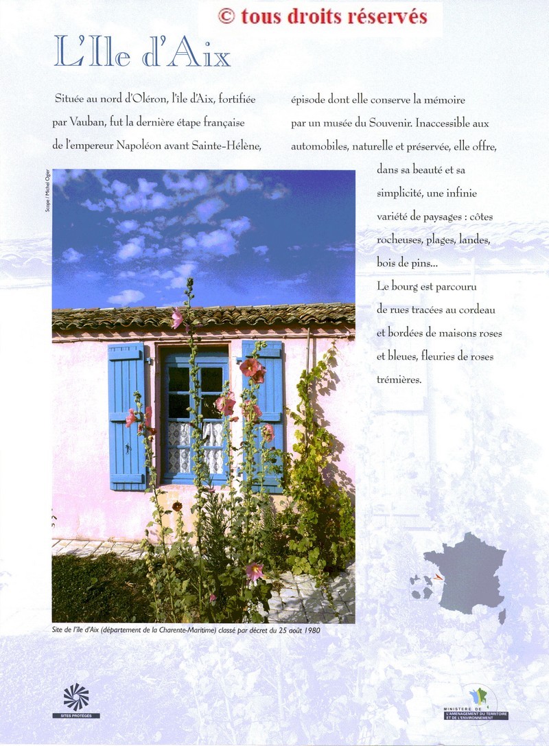 20060546/16 « L’Île d’Aix/[...] », Parimage (Ed.), [1999], photo de Michel Ogier [vue d’une maison sur l’Île d’Aix en Charente-Maritime, plus logo], 1 ex., 40 x 30 cm, couleur. |