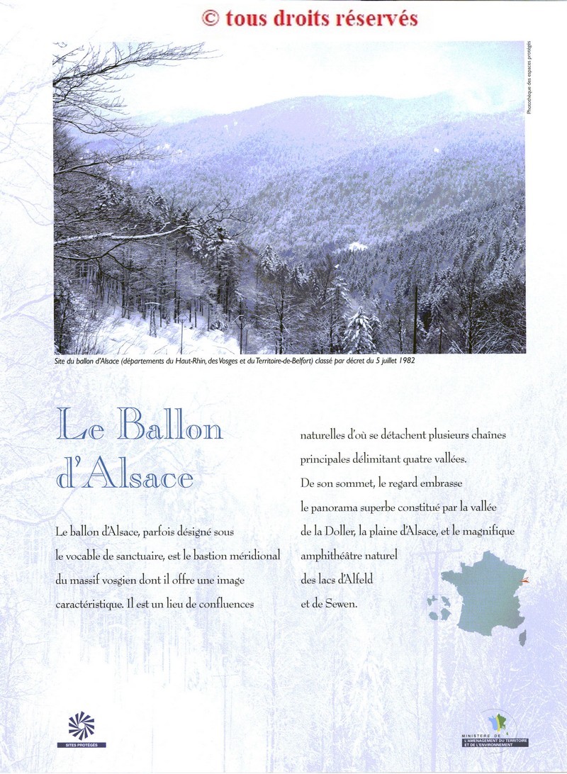 | 20060546/17 « Le Ballon/d’Alsace/[...] », Parimage (Ed.), [1999], photo de la Photothèque des espaces protégés, [vue du ballon d’Alsace en hiver dans le Haut-Rhin, les Vosges et le Territoire-de-Belfort, plus logo], 1 ex., 40 x 30 cm, couleur. |