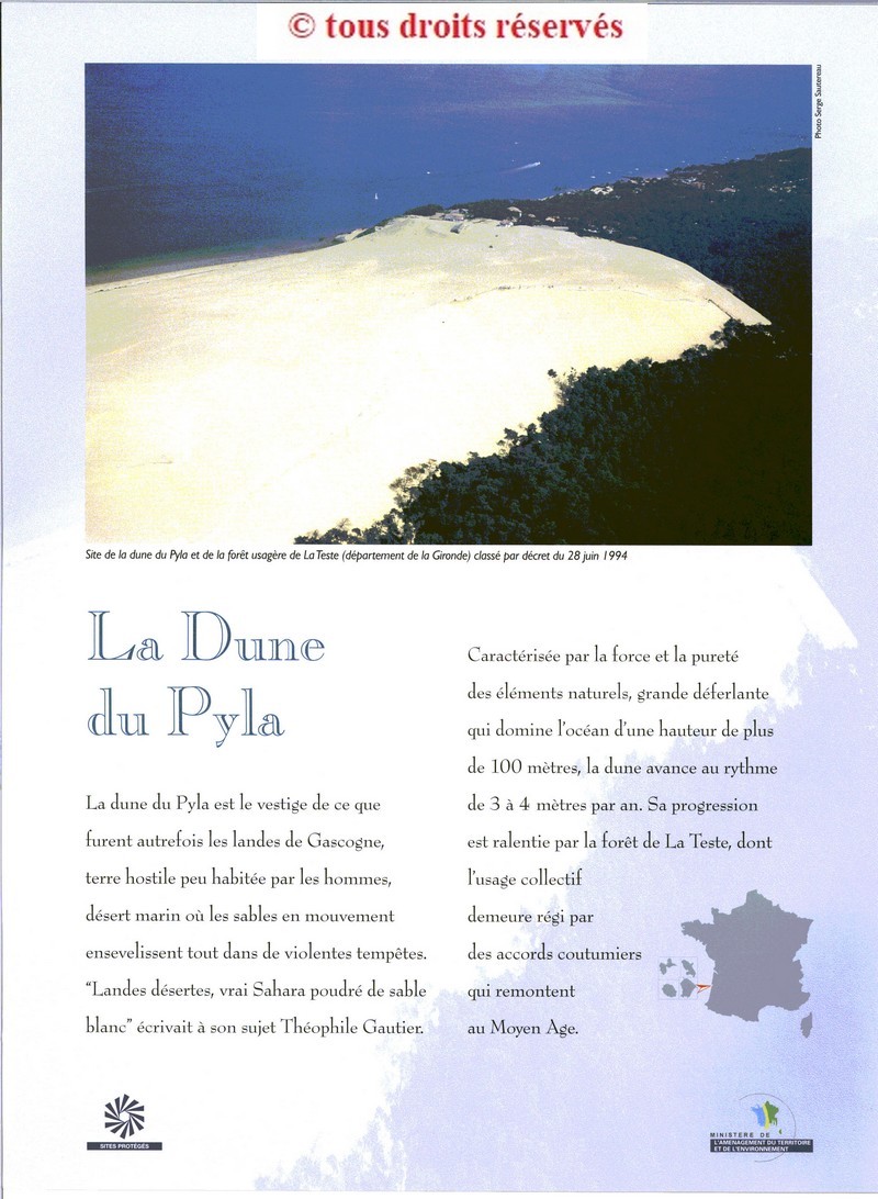 20060546/18 « La Dune/du Pyla/[...] », Parimage (Ed.), [1999], photo de Serge Sautereau, [vue de la dune du Pyla et de la forêt usagère de La Teste en Gironde, plus logo], 1 ex., 40 x 30 cm, couleur. |