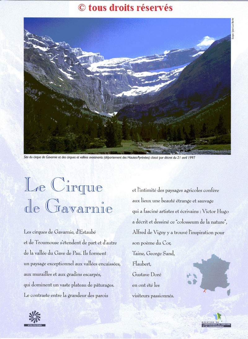 20060546/22 « Le Cirque/de Gavarnie/[...] », Parimage (Ed.), [1999], photo de Jean-Luc Barde, [vue du cirque de Gavarnie et des cirques et vallées avoisinants dans les Hautes-Pyrénées, plus logo], 1 ex., 40 x 30 cm, couleur. |
