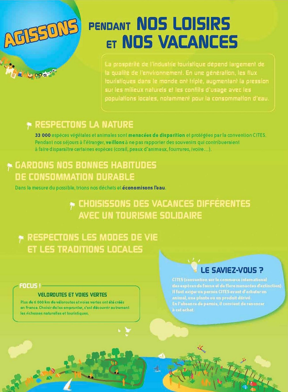« Agissons pendant nos loisirs et nos vacances », Ministère de l’écologie et du développement durable, Agence de l’environnement et de la maîtrise de l’énergie (ADEME), 60x80 cm, couleur, 2007