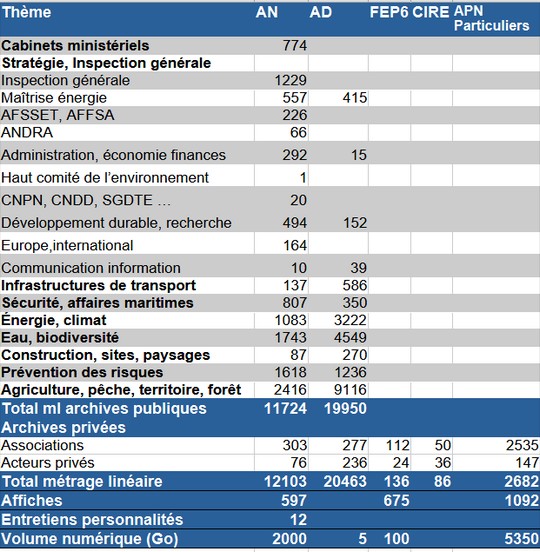 Métrage linéaire par thème, Voir Inventaires détaillés par thème
