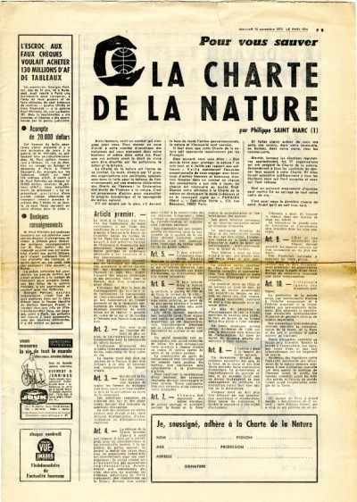 Élaboration et adoption de la « Charte de la Nature » par les associations de protection de la nature qui se structurent en associations régionales